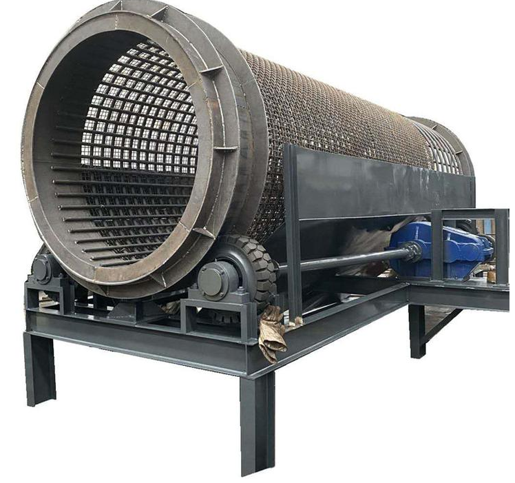 滚筒筛主要由滚筒装置,减速机,电机,筛内清理装置,底部支架,密封罩,出料口,进料口等组成。筒体呈倾斜放置,筒体被防尘密封罩罩住,生产的全部过程中几乎物粉尘和噪音污染。